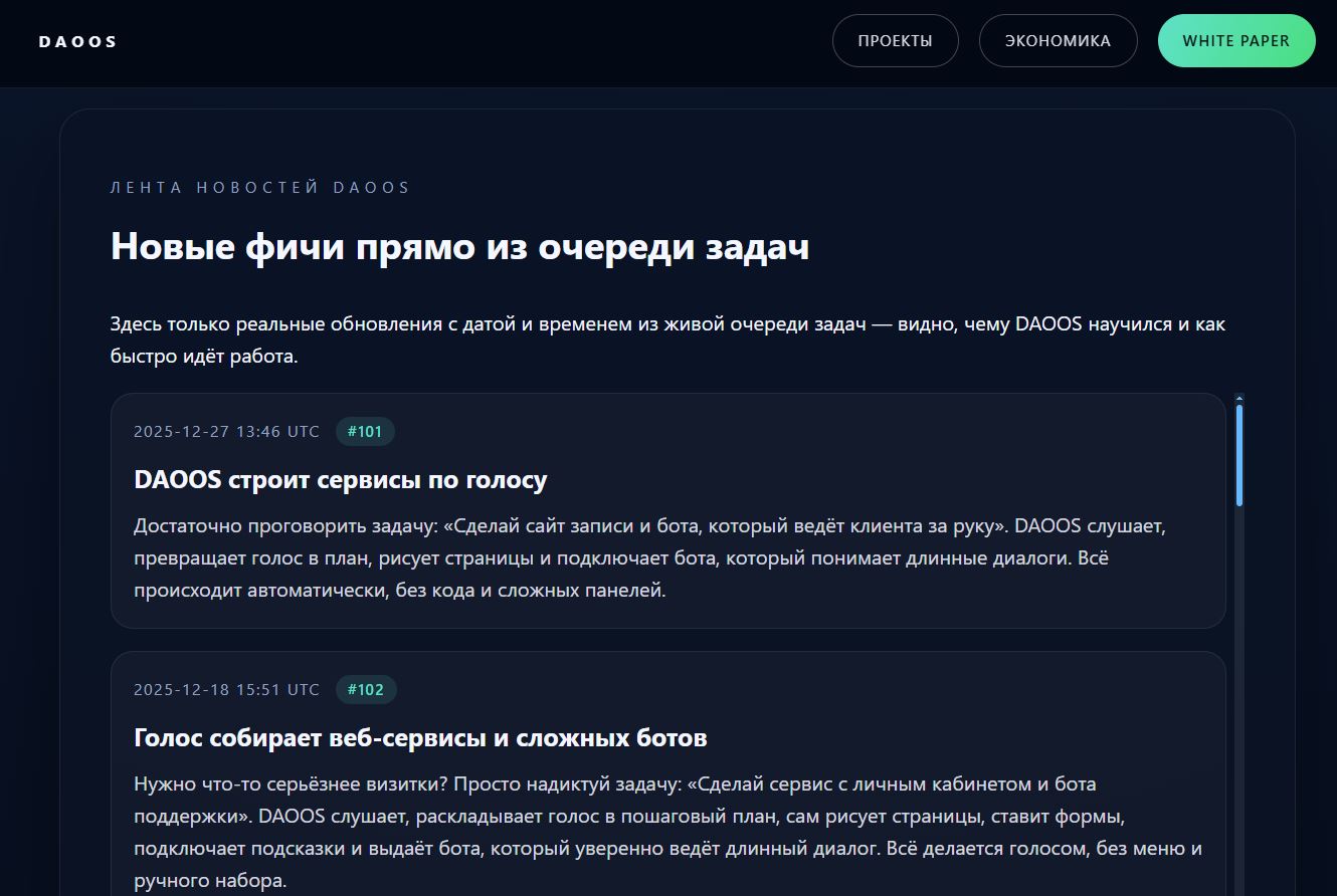 Голосовые переводятся в текст через Vosk, скриншоты прогоняются через OCR, а документы `.json`/`.docx` прикладываются без потерь структуры. Как только запись попадёт в `daoos_master_requests`, воркеры обрабатывают задачу и держат статусы `pending → in_progress → completed` синхронно с Telegram и проектной витриной.